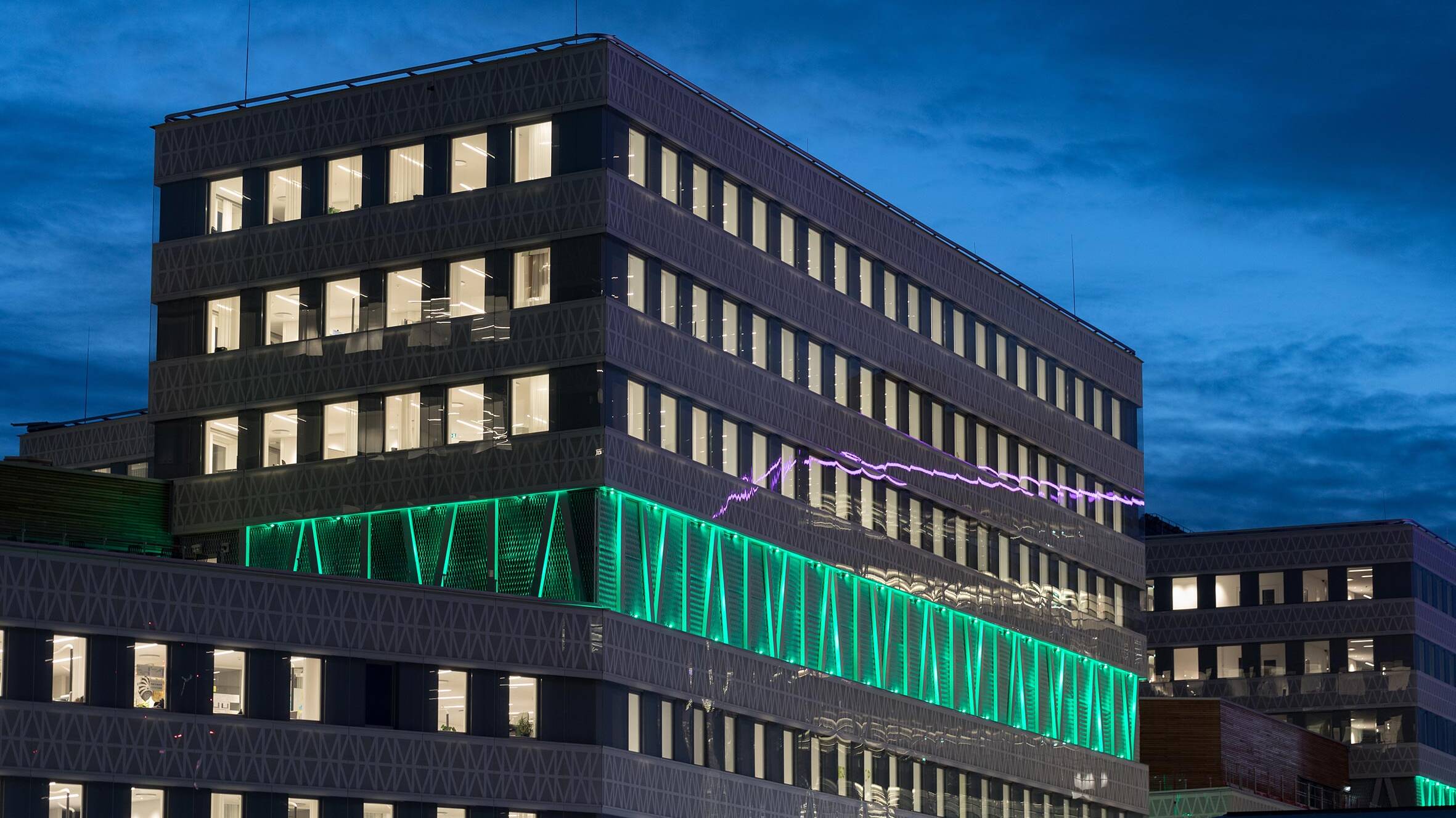 Accentbelysning som ger effektfulla kontraster skapas med våra smalstrålande spotlights, som lyfter fram fasadens detaljer och bidrar till en genomtänkt och uttrycksfull ljussättning.