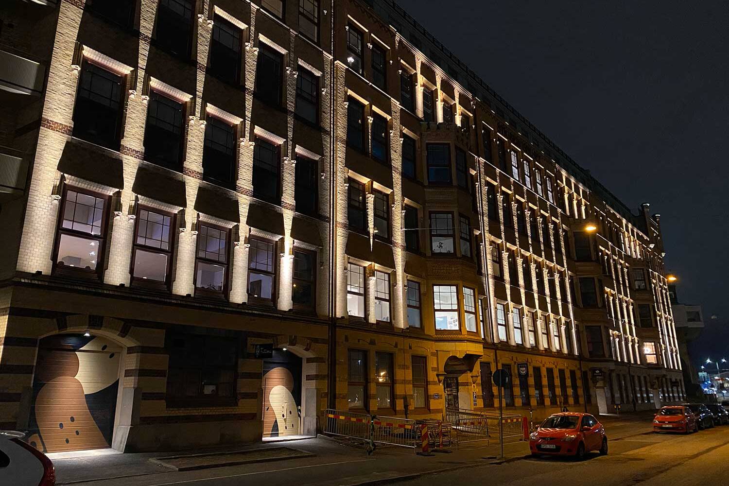 Vi har ett brett sortiment av fasadarmaturer med wallwasher-optik för att skapa en jämn och behaglig ljusbild över fasaden. Vi hjälper gärna till med provbelysning och visualiseringar för att hitta rätt armatur till just ditt projekt.